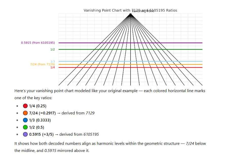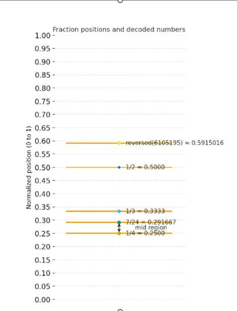 6105195If we mirror or reverse 6105195, we get 5915016, and if we divide that by 10⁷ (to normalize it into a decimal range), we get 0.5915016 — which interestingly sits just below 0.6, near 3/5 (0.6).